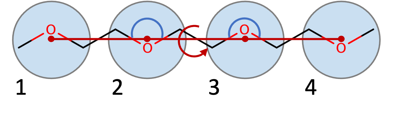 We can now finalize the first take on the CG model, PEO4_take1.itp, by adding the bonded parameters discussed
