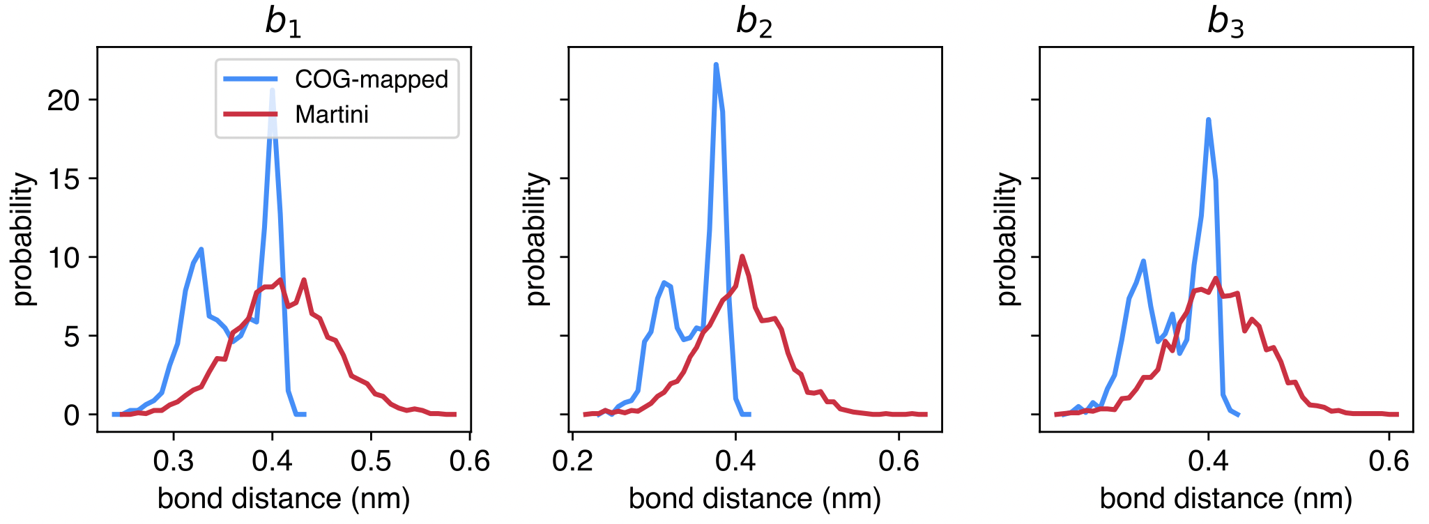 center of geometry (COG)-based mapping of AA structures, done taking into account the hydrogen atoms, constitutes the standard procedure for obtaining bonded parameters in Martini 3